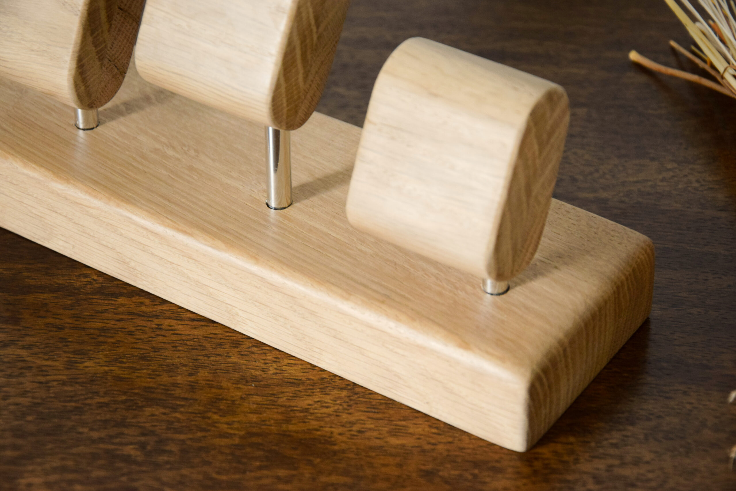 - Matériaux de qualité supérieure : fabriqué en chêne massif, ce présentoir offre une robustesse et une esthétique incomparables. Les axes de montage sont en aluminium chromé.